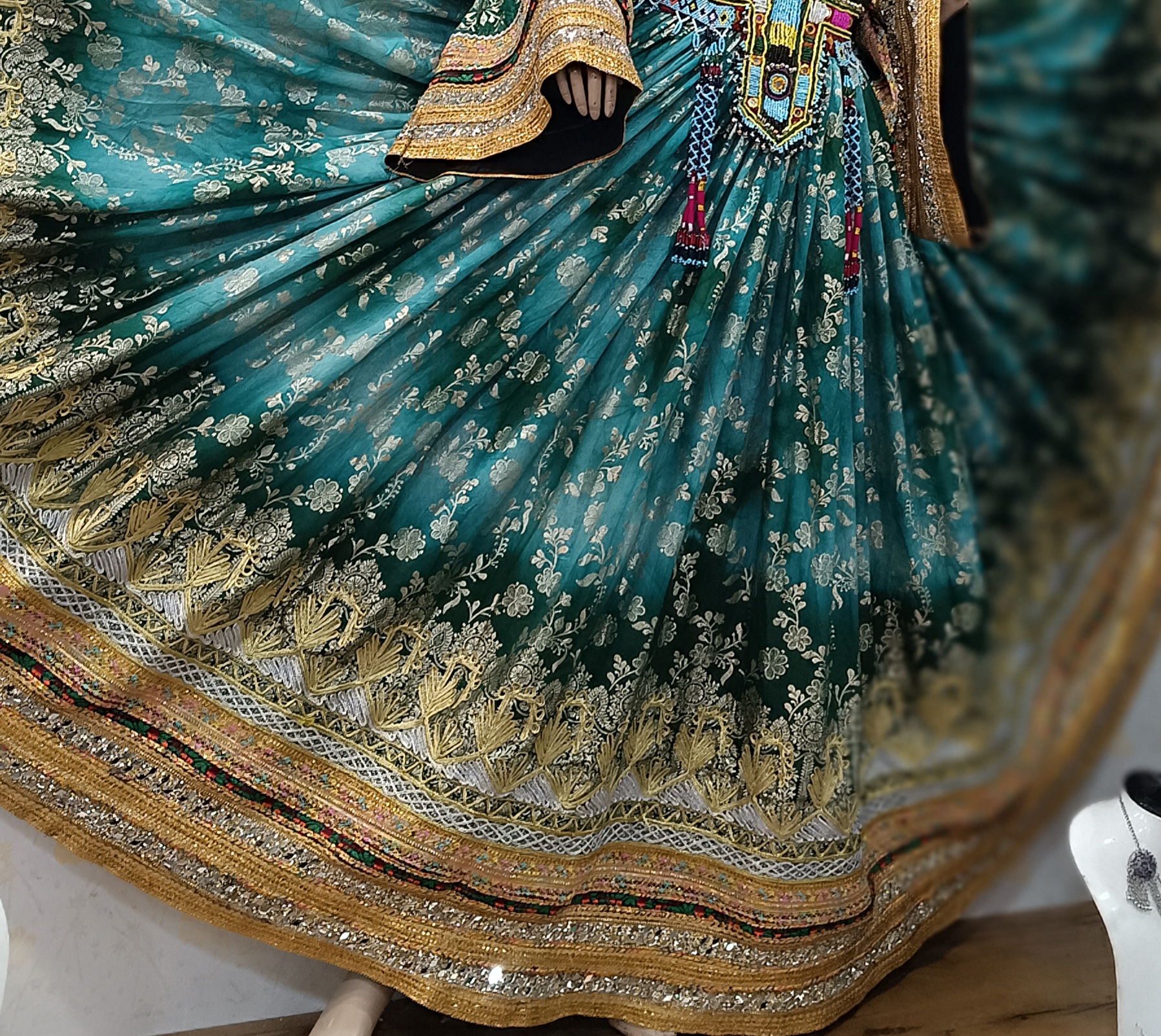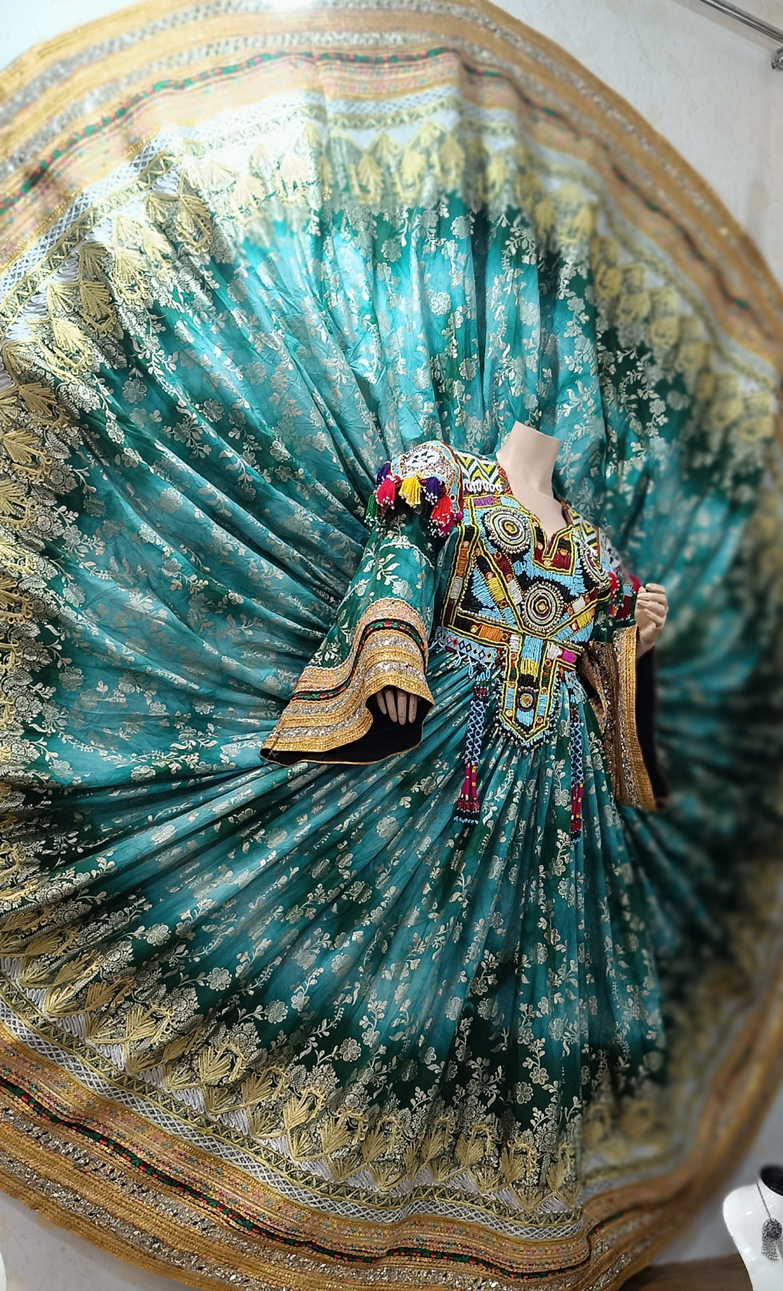 This dress is meticulously hand embroidered by skilled Afghan artisans showcasing their expertise and dedication to the craft.