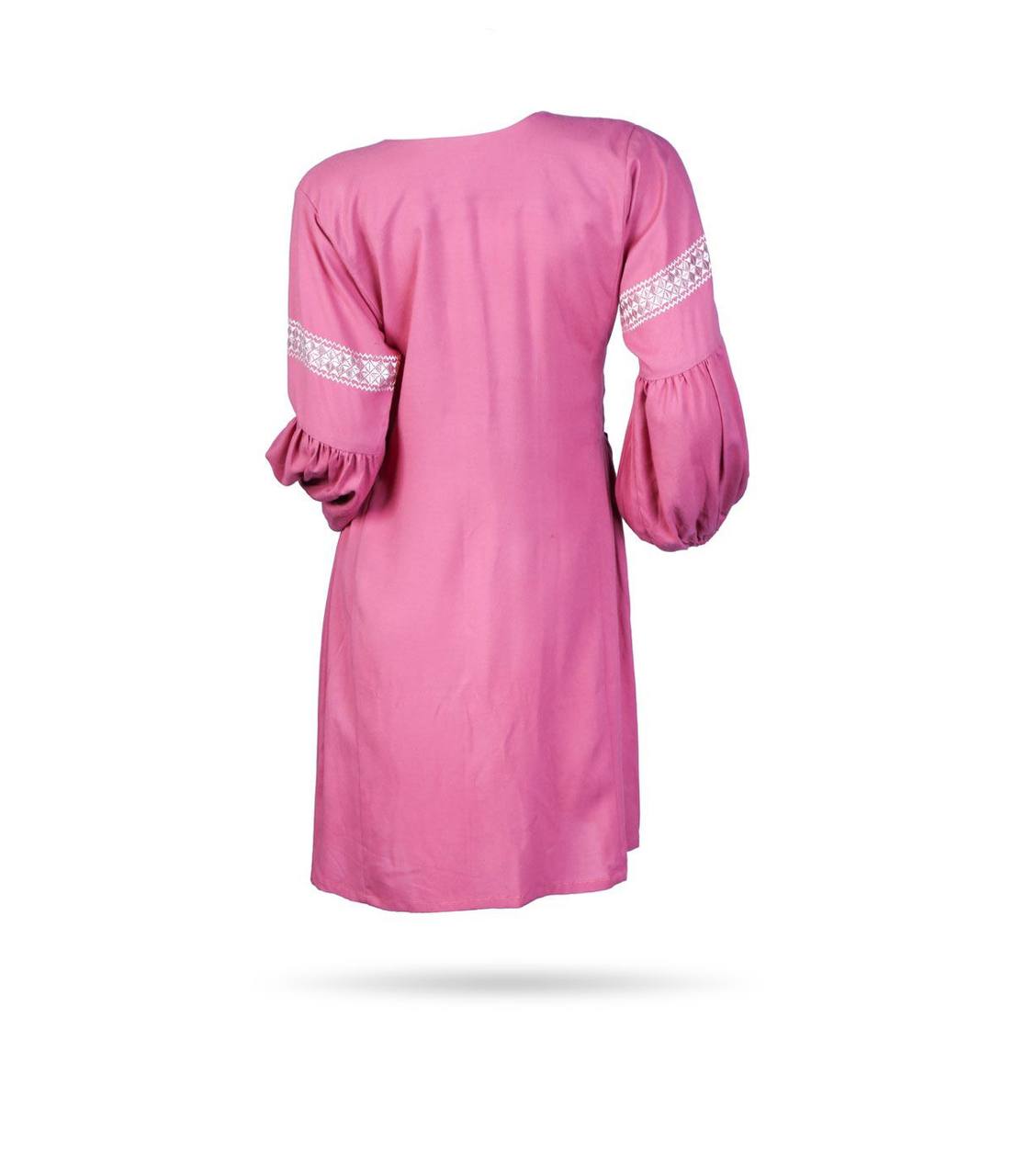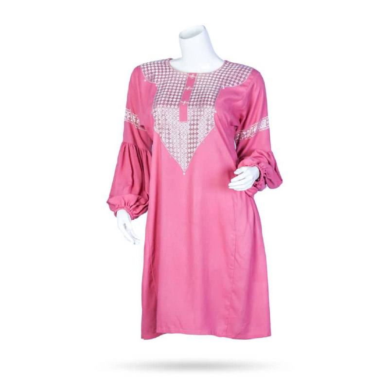 This is a simple high fashioned pure hand embroidered design that has been woven on high quality cotton fabric. It’s a pink Bamyani embroidery design. The model’s height is 172 cm. This dress was weaved in 3 months, and its cotton quality makes it feel soft, silky, and comfy. It can also be machine washed and does not wrap. It is the ideal light summer dress for girls/women. For its Usage: (Iron at a maximum sole-plate temperature of 110°C, and Mild professional dry cleaning in hydrocarbons).