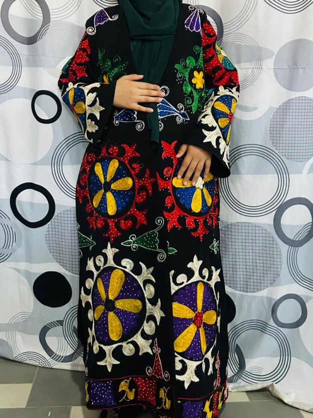 The overcoat is available in free size, with the option to order in your preferred colors and designs. By purchasing this piece, you are not only embracing beauty and authenticity but also supporting the skills and livelihoods of Afghan women.